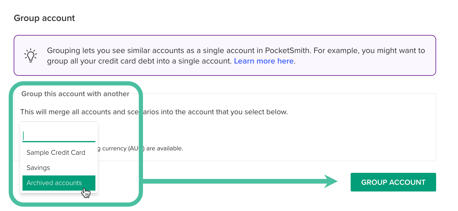 Once the new offline account has been created, you can group any accounts you'd like to archive with this primary account.