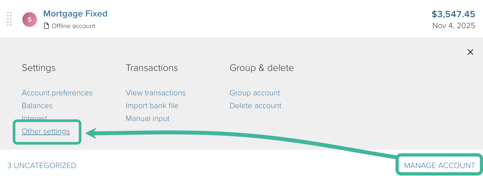 This means that all transactions within the mortgage account, both those already imported and any future transactions, will be deleted. As such, you will only need to categorize the expense side of your mortgage repayments leaving your bank account 🎉