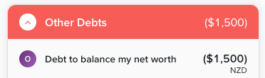 As the balance of the joint account will fluctuate, you will need to regularly update the value of the debt to reflect the changes in the account balance accurately. Just head to the Calendar and follow our guide here: Updating the value of an asset or debt from the Calendar page.