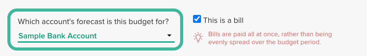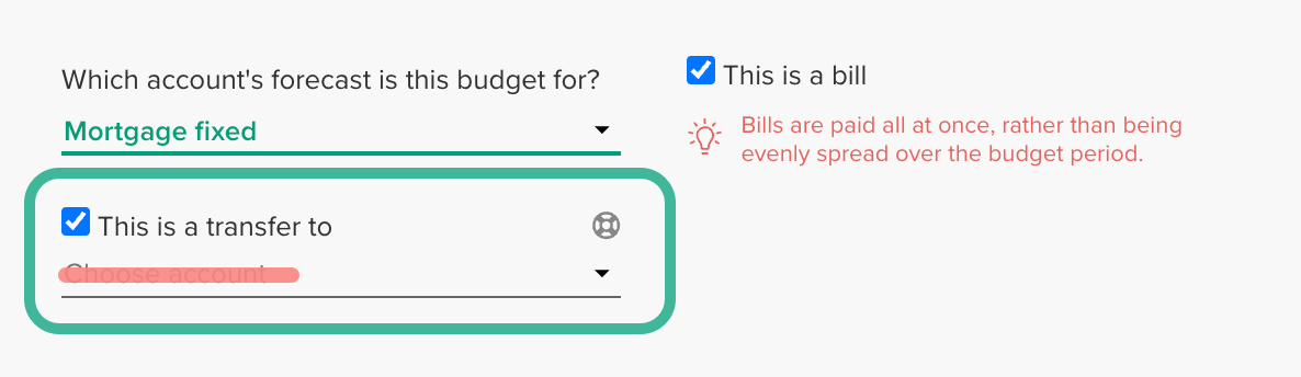 - Under 'Which account's forecast is this budget for?' select your mortgage account.