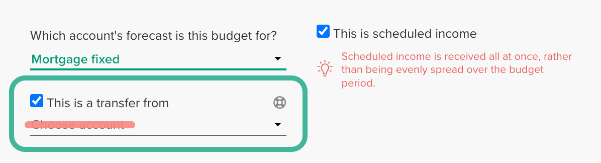 - Tick 'This is a transfer from', but don't select an account (as the other side of the budget is the expense budget created in step one).