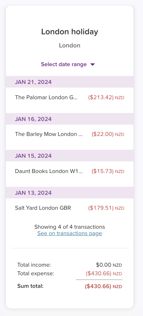This can be useful for keeping track of small loan repayments, tax-deductible transactions, or a recent holiday!