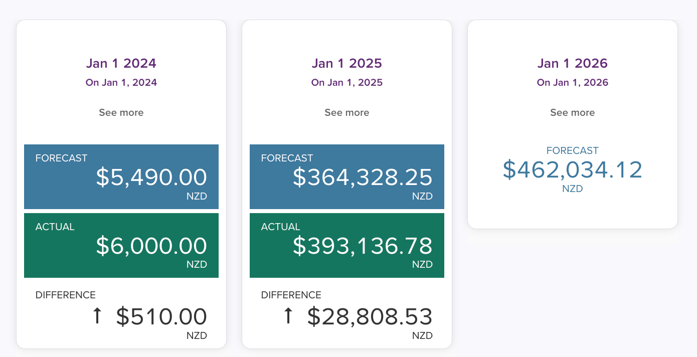 You can customise the Total balance widget to view key accounts or dates of interest: