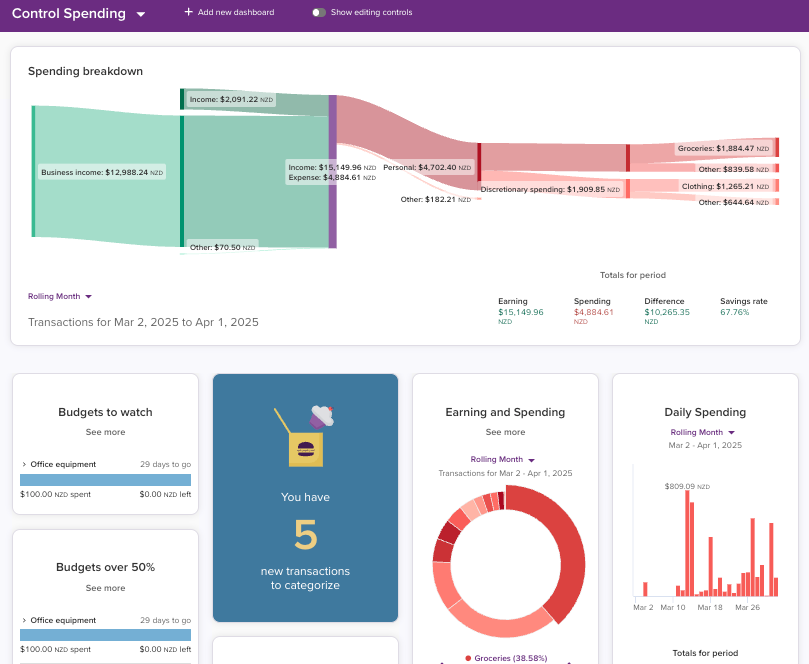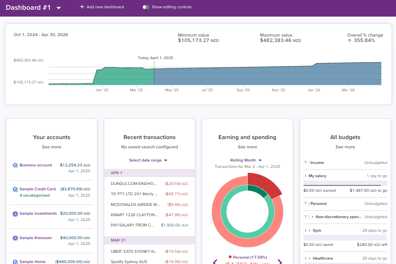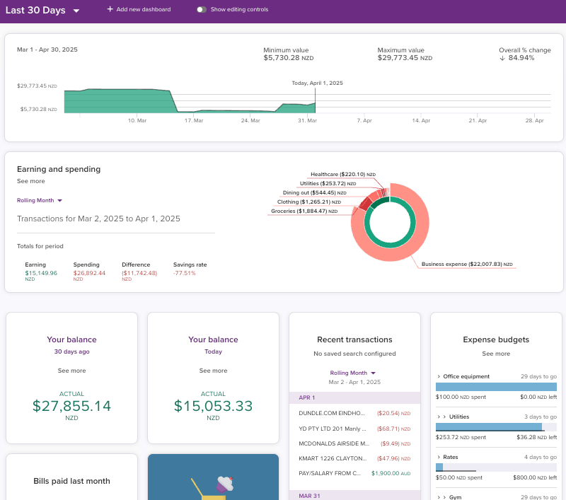Templates provide a handy base for further customising your Dashboard and quickly letting you see how capable the Dashboard is: