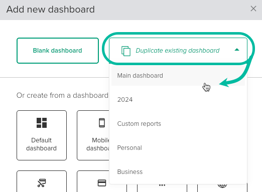 If you have some favourite widgets already set up, you can duplicate a Dashboard to create a copy and tweak it while keeping the original Dashboard intact: