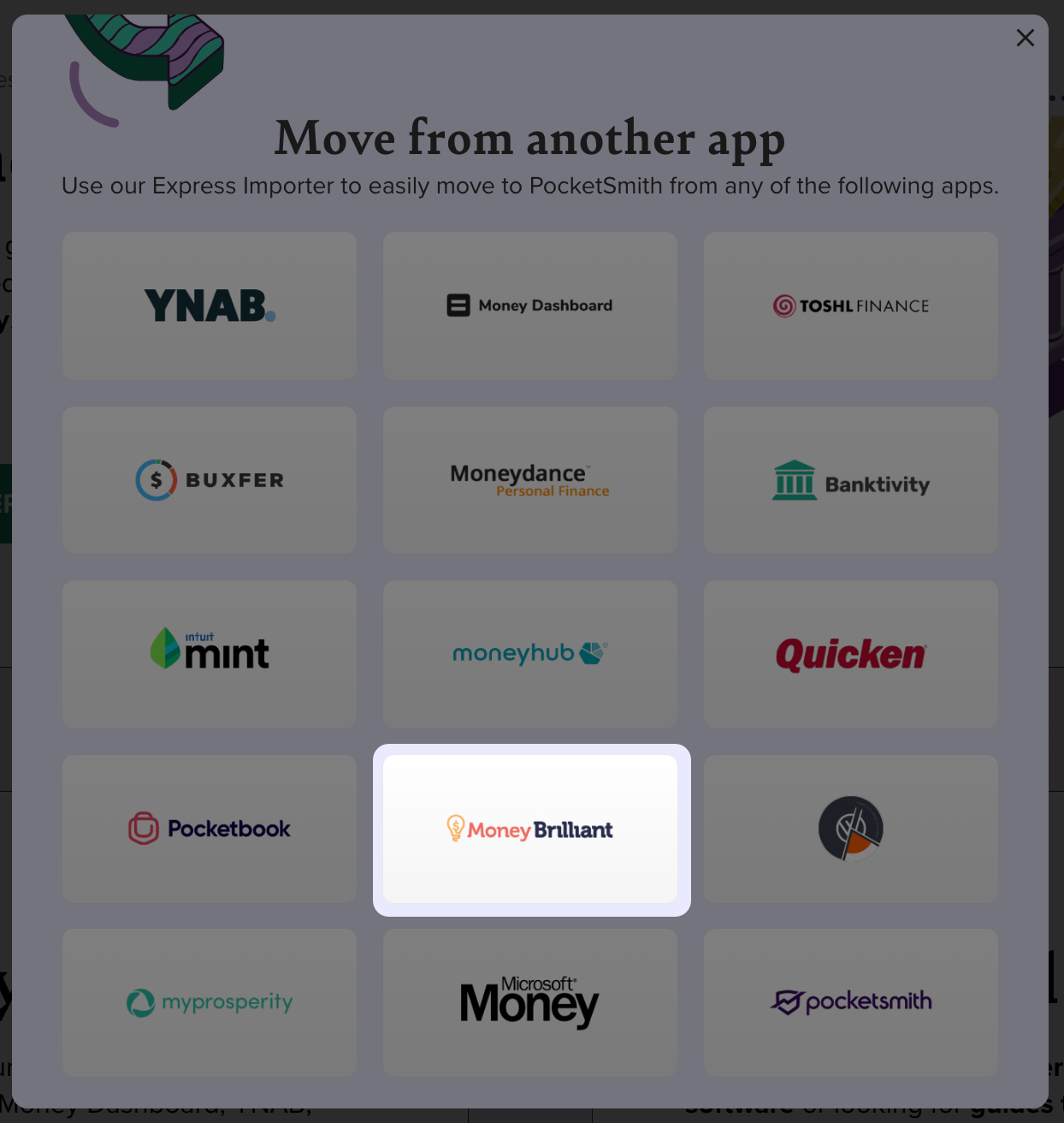 PocketSmith has a range of tools that make moving from other Personal Finance Management apps a breeze. Use the custom MoneyBrilliant importer to upload your transactional data directly into PocketSmith, meaning all your accounts and categorisation will be imported ✨