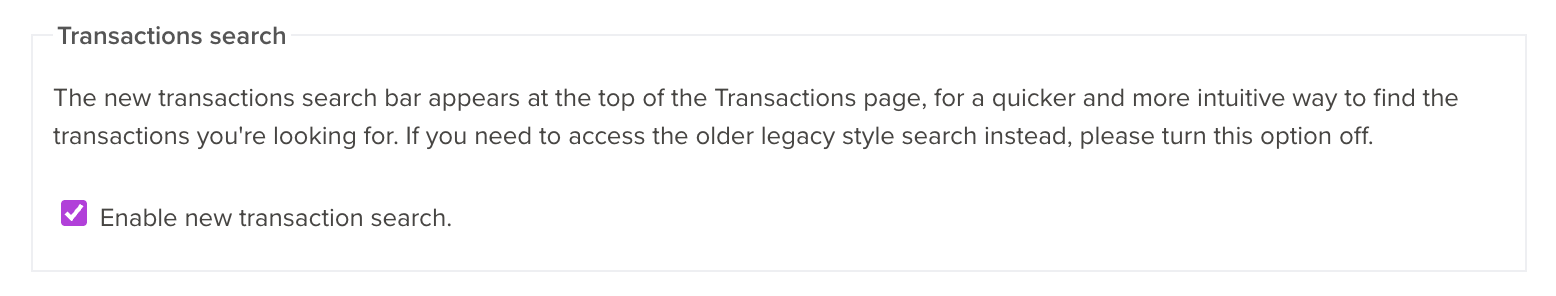 This guide is for the legacy transaction search.