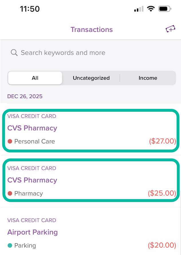 Or, tap the categorization widget from the Dashboard to see your uncategorized transactions.